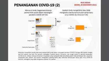 Meski banyak yang merasa khawatir dengan varian baru Covid19, namun sebesar 76,2 persen responden mengaku yakin terhadap antisipasi yang dilakukan pemerintah dalam menghadapi gelombang ketiga virus Covid-19. "Sementara yang menjawab tidak yakin sebesar 21,2 persen. Adapun responden yang tidak merespon pertanyaan ini sebesar 2,7 persen," lanjutnya.