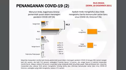 Sementara itu, berkaitan dengan kemunculan varian omicron, mayoritas masyarakat atau sebesar 62,8 persen mengetahui tentang berita atau informasi kemunculan varian baru Omicron. Sedangkan yang tidak mengetahui sebesar 37,2 persen.