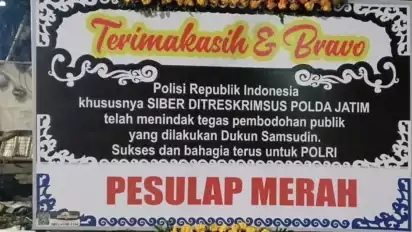 "Alhamdulillah hadiah karangan bunga dari saya sudah terpajang di Polda Jatim sebagai bentuk apresiasi atas kinerja dan ketegasannya," demikian caption unggahan Pesulap Merah dikutip pada Rabu (6/3/2024).