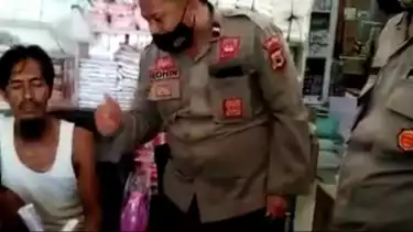 Dalam video itu Aipda Udin juga memaksa warga tadi untuk membuat pernyataan jika menolak divaksin. Warga ini terlihat duduk di kursi toko dan dikerumuni sejumlah polisi berseragam lengkap.