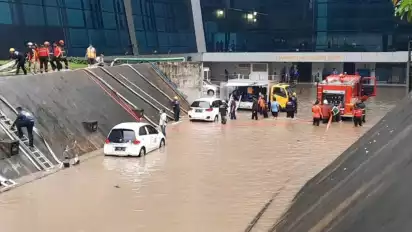 Banjir yang melanda di area bongkar muat terminal 3 tidak berlangsung lama, pemadam kebakaran setempat dibantu petugas dari Angkasa Pura II langsung memompa air agar cepat surut.