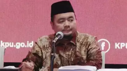 Anggota KPU RI, Mochammad Afifuddin dalam Rapat PlenoRekapitulasi Hasil Penghitungan Perolehan Suara Tingkat Nasional.