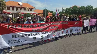 Surabaya, Jawa Timur - Geram dengan berbagai pernyataan Habib Bahar bin Smith di media sosial, yang dinilai menghina simbol negara dan memicu perpecahan bangsa, Rabu (22/12/2021), Arek Suroboyo Bergerak, turun ke jalan melakukan aksi di depan gedung negara Grahadi Surabaya. Massa menuntut Kapolri segera menangkap Habib Bahar bin Smith.