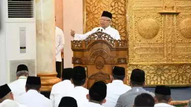 Jakarta, tvOnenews.com - Wakil Presiden Ma'ruf Amin dan isteri Wury Ma'ruf Amin melaksanakan shalat Isya dan Tarawih berjamaah di Masjid Besar Al Uswah, Tanjungpinang Timur, Kota Tanjungpinang, Kepulauan Riau (Kepri), Kamis (14/3/2024) malam.
