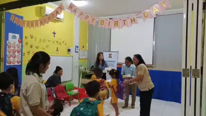 Meilany mengatakan sejumlah kader dari relawan wanita pejuang jokowi menyambangi dua sekolah yakni TK Happy Holly Kids dan TK Calvary.