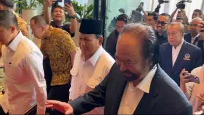 Berdasarkan pantauan tim tvOnenews.com, Prabowo tiba di NasDem Tower sekitar pukul 13.37 WIB.
