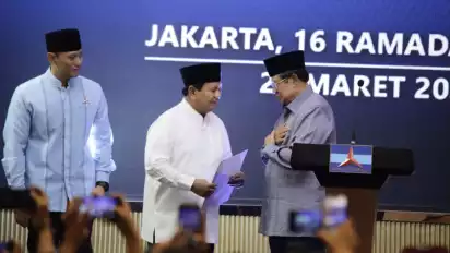“Ini Pak Prabowo keyakinan saya atas pemipin kita mendatang, atas harapan saya, dan juga doa kita semua agar Pak Prabowo kokoh kuat seperti batu karang,” jelas SBY.