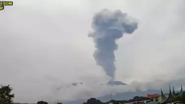 Erupsi tersebut membuat Gunung Marapi memuntahkan abu vulkanik setinggi 1,5 kilometer.