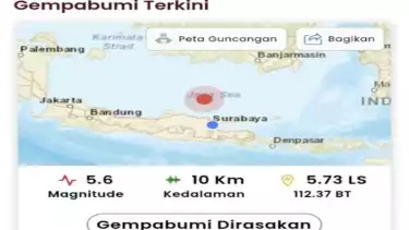 Berdasarkan laman resmi Badan Meteorologi, Klimatologi, dan Geofisika (BMKG), gempa berlokasi di 5.73 derajat Lintang Selatan-112.37 derajat Bujur Timur.