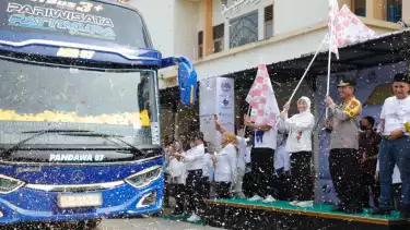 Jakarta, tvonenews.com - Menteri Ketenagakerjaan, Ida Fauziyah melepas keberangkatan 24 unit bus untuk mengangkut 1.400 orang karyawan PT Panasonic Gobel Group.
