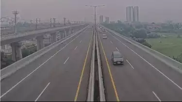 Tampak laju kendaraan roda empat cukup kencang tanpa ada hambatan. Kondisi yang sama juga terlihat di Tol Layang MBZ dari Karawang hingga Cikunir.