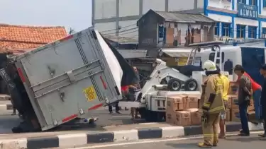 Truk Muatan Air Mineral Terguling di Jalan Layang Pulogebang Jakarta Timur, Ini Penyebabnya