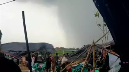 Dalam waktu singkat angin puting beliung menghancurkan dan menerbangkan atap rumah warga serta menimbulkan kepanikan masyarakat yang langsung mengevakuasi diri ke tempat yang lebih aman.