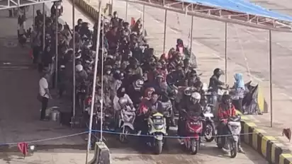 Kendaraan R2 hanya mengantre pada satu jalur dari total dua jalur yang tersedia. Kendaraan tidak berjejer hingga ke gerbang pelabuhan. Terdapat puluhan sepeda motor yang menunggu giliran masuk kapal.