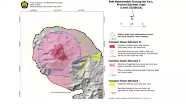 Jakarta, tvOnenews.com - Pusat Vulkanologi dan Mitigasi Bencana Geologi (PVMBG) menaikkan status Gunung Awu yang terletak di Kabupaten Kepulauan Sangihe, Sulawesi Utara, dari sebelumnya waspada atau level II menjadi siaga atau level III.