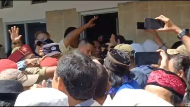 Pantauan tvOnenews.com, keduanya digiring oleh massa aksi ke pos pengamanan yang berada di area gedung Kementerian Pariwisata dan Ekonomi Kreatif (Kemenparekraf).