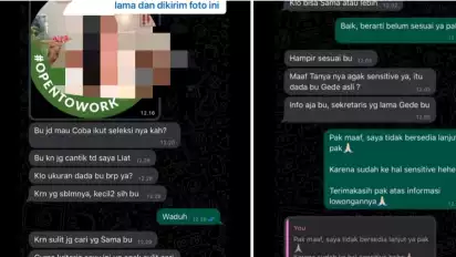 Chat WhatsApp interviewer dengan pencari kerja alias korban pun dibongkar oleh DF. Mulanya, korban dapat tawaran kerja sebagai sekretaris dari interviewer berinisial RC lewat WhatsApp.