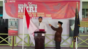 Seorang narapidana perkara terorisme Lapas Kelas II/B Muara Tebo, Provinsi Jambi, Kamis (30/12), Giovanov Rafli bin Rafli Arif, melaksanakan ikrar setia kepada Negara Kesatuan Republik Indonesia.