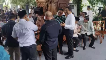 Adapun kegiatan yang juga berbalut halal bihalal tersebut digelar di halaman belakang rumah Anies.Â