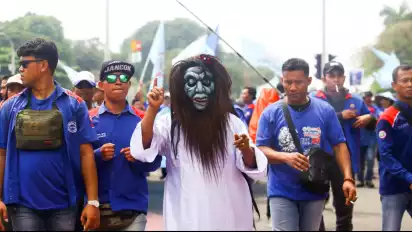 Ada 'Hantu' di Demo Hari Buruh Internasional di Patung Kuda