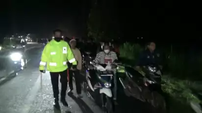 Para pemuda ini nekat menerobos barikade Satlantas Polres Tuban yang tengah menggelar razia. Namun usaha para pemuda itu dapat digagalkan petugas hingga motor mereka oleng dan terjatuh.