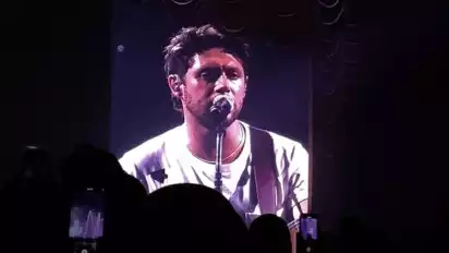 Dia tampil dengan kaos putih dengan dibalut jaket cokelat. Anggota grup vokal One Direction ini lalu melepas jaket cokelatnya di tengah konser. Niall juga menyapa penggemarnya dari atas panggung.