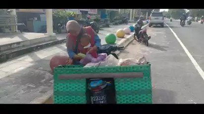 Kotawaringin Barat, Kalimantan Tengah - Perjuangan seorang ibu untuk anaknya selalu menyentuh hati. Kisah seorang Ibu yang satu ini harus menggendong anaknya sambil keliling berjualan, membuat warga Kotawaringin Barat terharu.