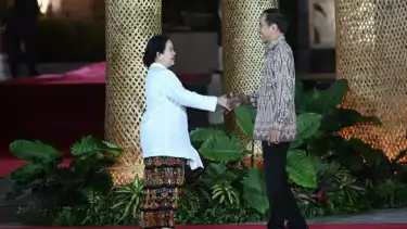 Tiba di lokasi, Puan yang datang mengenakan kebaya berwarna putih dan kain Endet khas Bali langsung bersalaman dengan Jokowi yang menunggu di atas panggung jalur VVIP bagi para kepala negara yang hadir.