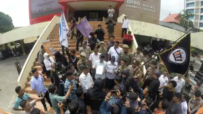 Aksi awalnya dengan damai, kemudian massa yang ingin menemui perwakilan dari anggota dewan DPRD Sulsel, kemudian memaksa masuk hingga jurnalis dengan anggota satpol PP DPRD Sulsel saling pukul.
