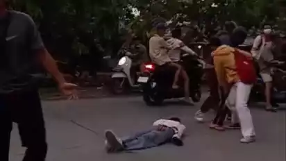 Dalam video yang beredar di media sosial, seorang pelajar terlihat terkapar di tengah jalan usai kena bacok senjata tajam.