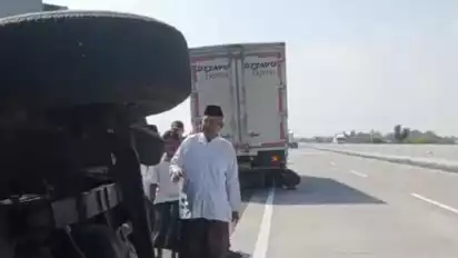 Mobil Rombongan Pengantar Haji dari Demak Terguling di Tol Semarang