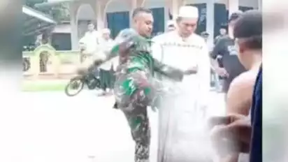 Deli Serdang, tvOnenews.com - Seorang oknum TNI diduga menendang kepala warga, di pinggir jalan Dusun 1, Desa Jaharun B, Kampung Johar Baru, Kecamatan Galang, Deli Serdang, Sumatera Utara.