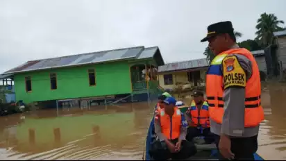 "Tujuan kami melakukan patroli ini untuk mendata warga yang rumahnya terendam air juga langsung menolong warga yang terdampak banjir," kata Kapolsek.