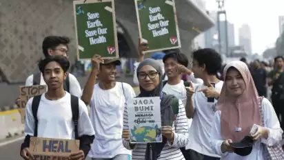 Jakarta, tvOnenews.com - Puluhan anak muda relawan SDGs Heroes turun ke jalan pada momen Car Free Day di Bundaran HI, Jakarta Pusat, Minggu (9/6/2024).