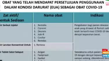 "Obat yang telah mendapatkan persetujuan penggunaan dalam kondisi darurat baru dua, Remdesivir dan Favipiravir," kata Kepala BPOM Penny K Lukito kepada jajaran Komisi IX DPR RI dalam Rapat Kerja secara virtual yang dipantau di Jakarta, Selasa.