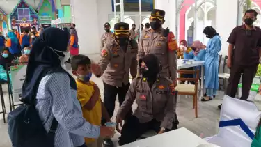 Semarang,Jawa Tengah - Berbagai upaya dilakukan Polres Semarang dalam mengejar target percepatan vaksinasi Covid-19 bagi anak usia 6 -11 tahun. Salah satunya dengan menggelar vaksinasi di lokasi wisata dan pusat keramaian seperti alun alun.