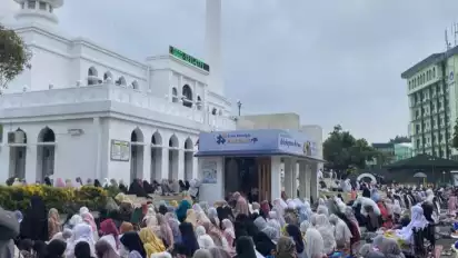 Jakarta, tvOnenews.com - Jemaah shalat Idul Adha di Masjid Al-Azhar, Kebayoran Baru, Jakarta Selatan, Minggu (16/6/2024), melimpah hingga ke bagian luar masjid.
