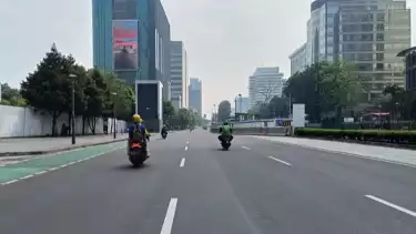Pada saat berada di lampu merah depan gedung Bawaslu RI hingga Bundaran Patung Kuda pun hanya ada beberapa kendaran bermotor saja.