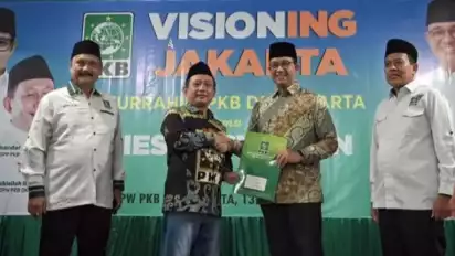 Mantan Gubernur DKI Jakarta Anies Baswedan menerima rekomendasi sebagai bakal calon gubernur dari PKB Jakarta di Kantor DPW PKB, Jakarta.