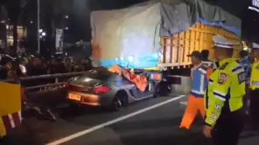 "Setibanya di KM 5+200 sebelum GT Kuningan 2, Prosche menabrak bagian belakang truk besi," tulis keterangan dari TMC Polda Metro Jaya, Rabu.