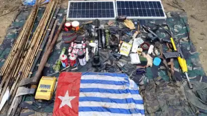 "Selain itu terdapat juga empat butir amunisi tajam kaliber 5.56, satu buah selongsong, satu buah magazen, satu helai bendera bintang kejora, dua buah solar sel, satu buah handphone android, satu buah handphone poliponik, satu buah HT," kata Ganessakti dilansir dari Antara, Minggu (23/6).