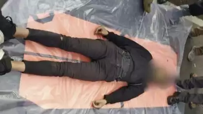 Pria tersebut ditemukan menggantung dengan tali tambang di lehernya serta mulut dan mata tertutup lakban hitam.