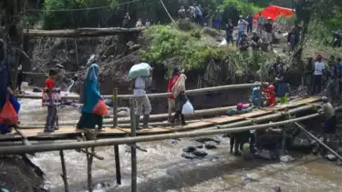 Jakarta, tvOnenews.com - Banjir bandang yang terjadi di Kecamatan Lengkong, Kabupaten Sukabumi, Jawa Barat, Sabtu (29/6/2024), sekitar pukul 17.00 WIB, mengakibatkan sejumlah rumah termasuk tempat ibadah terendam dan memutus jembatan penghubung antar-kampung.