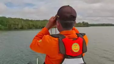 Namun, hanya menemukan sepatu korban yang mengambang dan terdapat pusaran air di sekitar lokasi yang dicurigai tempat hilangnya korban.