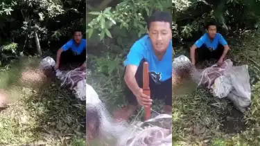 Di dalam video yang viral, pelaku mutilasi terlihat memamerkan pisau yang cukup panjang.