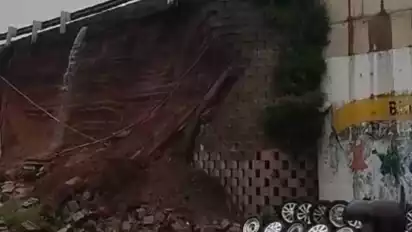 Bahkan kejadian tersebut ramai di media sosial. Dalam video yang beredar, dinding yang cukup tinggi itu sudah dalam kondisi jebol akibat tidak dapat menahan air saat hujan deras.