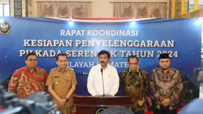 “Ini Pak Pj Gubernurnya (Fatoni) hebat, untuk KPU beres, Bawaslu beres, untuk TNI beres, Polri juga beres, tepuk tangan untuk ini,” kata Mendagri saat Rapat Koordinasi (Rakor) Kesiapan Penyelengaraan Pilkada Serentak Tahun 2024 Wilayah Sumatera di Regale Internasional Convention Center, Medan, Sumatera Utara, Selasa (9/7/2024).