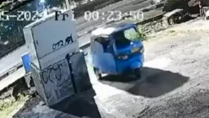 Dalam video yang beredar, terlihat sebuah Bajaj berwarna biru yang sedang terparkir didatangi oleh pelaku yang hanya seorang diri.