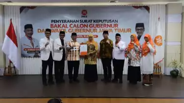 Jakarta, tvOnenews.com - Partai Keadilan Sejahtera (PKS) resmi mengusung Khofifah Indar Parawansa dan Emil Dardak sebagai cagub-cawagub di Pilgub Jawa Timur (Jatim) 2024.