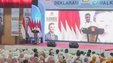 Jakarta, tvOnenews.com - Sekjen Partai Gerindra Ahmad Muzani mendeklarasikan Ridwan Dhani Wirianata sebagai calon walikota Bandung. Dhani adalah bekas sekretaris presiden terpilih Prabowo Subianto dan merupakan salah satu orang kepercayaan Ketua Umum Partai Gerindra itu.